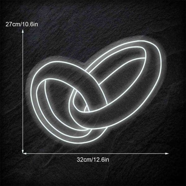 Buy Now and Illuminate Your Love Story. “Wedding Rings” LED Neon Sign is your way to symbolize the beauty of commitment and unity. Illuminate your wedding space and celebrate love with elegance and warmth today!